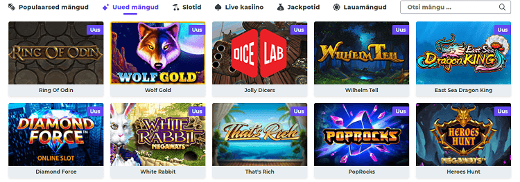 Lisaks slottidele leiab hulgaliselt põnevat ka live-kasiino ja lauamängude rubriikide alt. Eraldi kategooria “Jackpotid” all näed täpselt, kui suur on parasjagu erinevate mängude maksimaalne võimalik võidusumma.