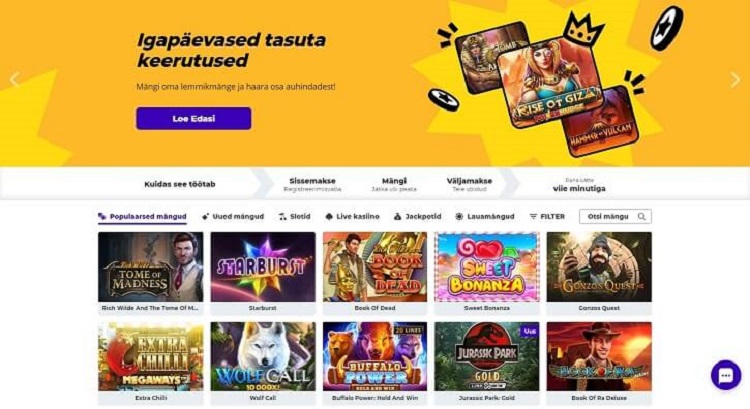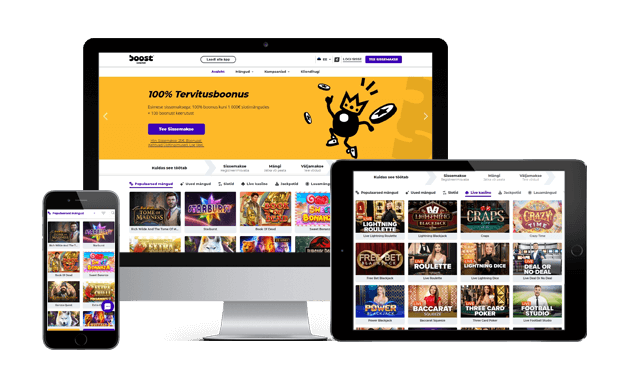 Boost kasiino on uhiuus online mängude portaal, mis pakub suurepärast alternatiivi teistele Eesti kasiinodele. Äärmiselt mugav kasutajakogemus, Pay N Play konto kinnitamise ja maksete süsteem, Boost punktid ja hulgaliselt kampaaniaid on ainult mõned põhjused, miks peaksid neile igal juhul võimaluse andma!