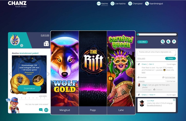 Chanz kasiino on üks populaarsemaid Eesti mänguportaale, mis lisaks sotsiaalsele aspektile paistab silma mitme teisegi huvitava külje pealt. Tegemist on Pay N Play kasiinoga, kus mängimist saad alustada ilma kontot loomata. Soovi korral saad konto kinnitada küll ka mobiili-ID, ID-kaardi, Smart-ID, Facebooki, Google, Twitterit või parooli kasutades.